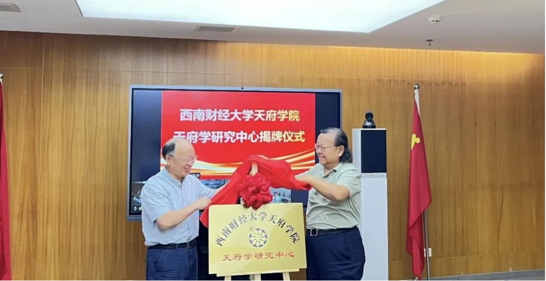 在与会嘉宾的共同见证下,蒲果泉校长和李后强教授共同为“天府学研究中心”揭牌,标志着这一重要的学术平台正式投入运行。