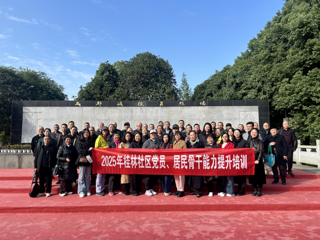 在成都战役纪念馆,全体学员向革命先烈敬献鲜花,在展览文物与英雄事迹中感悟初心使命,强化基层党员和居民骨干的责任担当。
